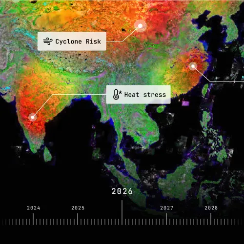 Assess likelihood and intensity of risks such as heat, flood, cyclone, drought, and policy shifts across time horizons.